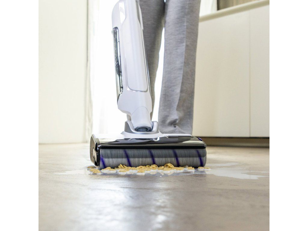 Különleges, mikroszálas forgóhenger hatékonyan tisztítja a csempét, fát, lamináltat és a vinyl padlót is. A tisztavíz tartály 0,79 l, a szennyvíztartály 0,67 l befogadóképessége akár 400 m² terület egyszeri takarítását is lehetővé teszi egyetlen feltöltéssel.